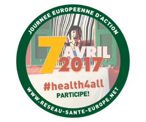 Le 7 avril, le Réseau européen contre la commercialisation et la privatisation de la santé et de la protection sociale appelle à la deuxième édition de la Journée d’action européenne contre la commercialisation de la santé. En 2016, des actions ont eu lieu en Belgique, France et Espagne ainsi que des activités ailleurs en Europe partagées par les réseaux sociaux.